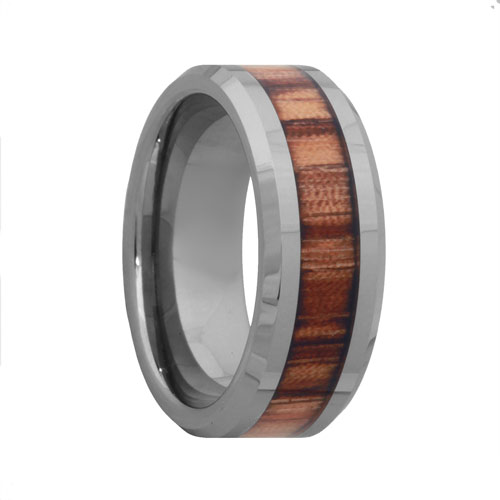 Hebron Tungsten Zebra Wood Inlaid Carbide Band (6mm - 8mm)